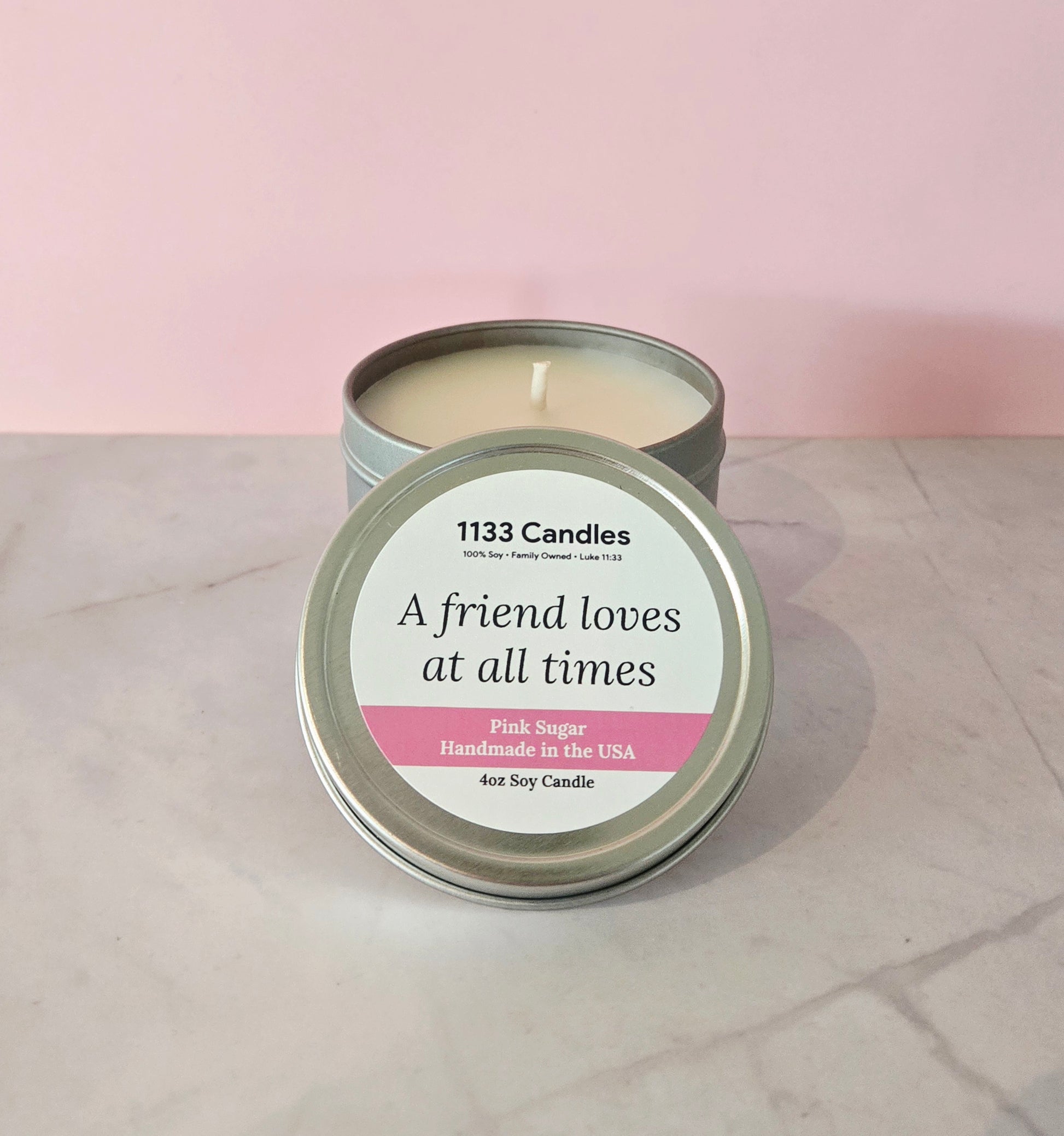 4oz Pink Sugar Soy Candle | Friendship Gift | Christian Candle