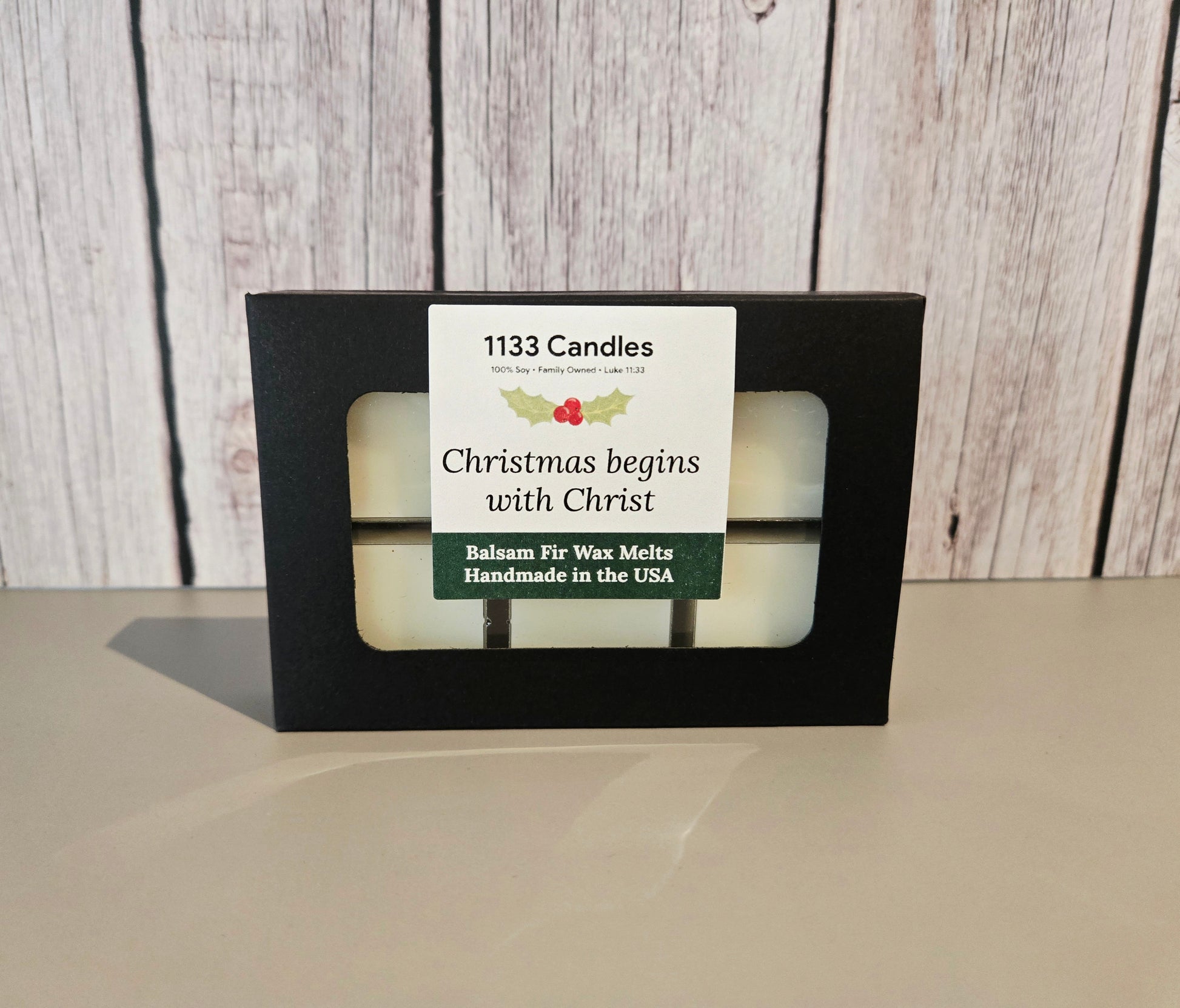 Have you ever decorated your artificial Christmas tree and it looks spectacular, but something is missing? You're missing the refreshing aroma of pine and fir that delights your nose when you walk through the door. Our Balsam Fir wax melts will make your home smell delightful, just like a real Christmas tree. Melt them in your wax warmer and remember that Christmas begins with Christ.