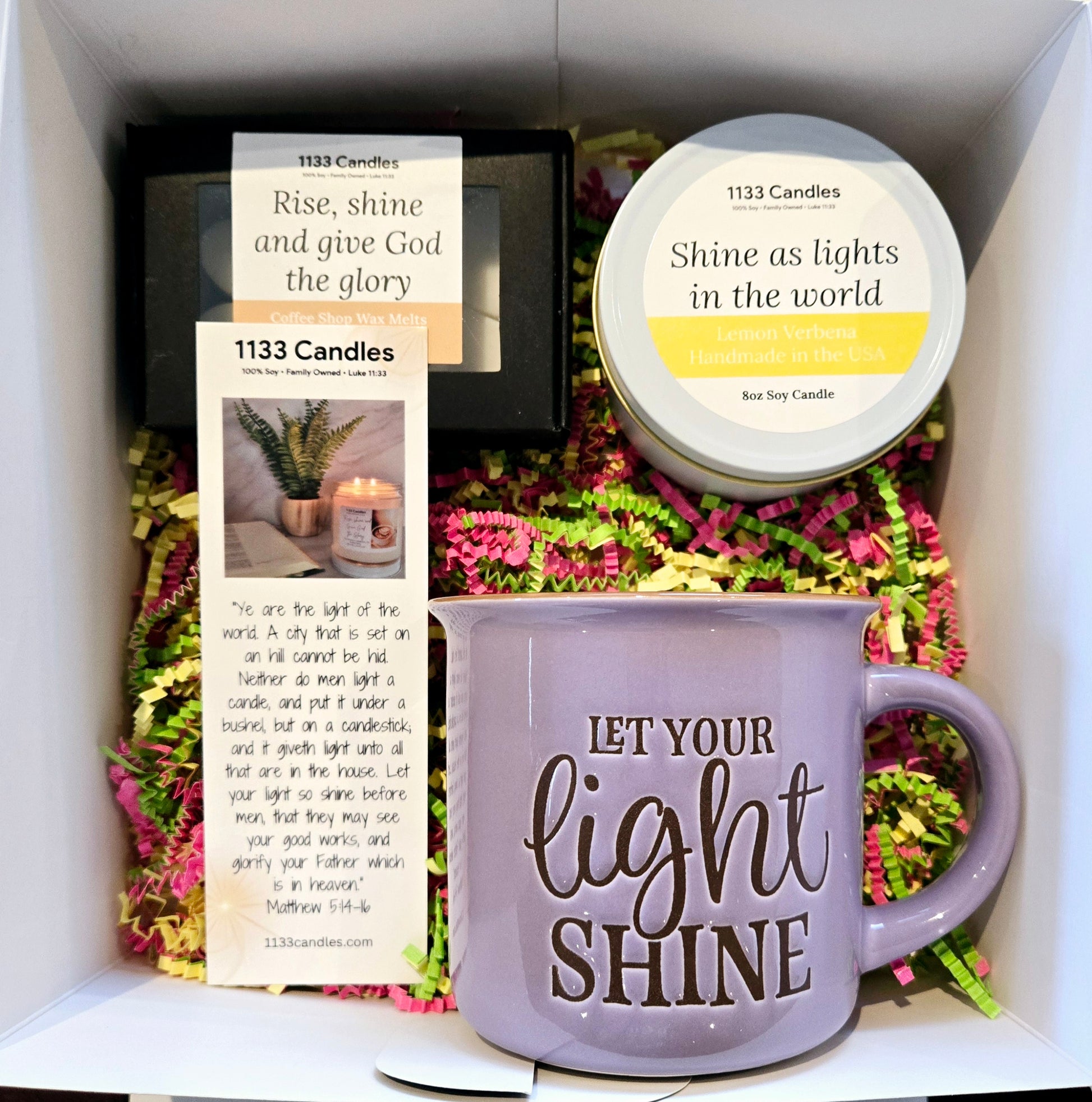 The possibilities are endless and your loved ones will enjoy resting and refreshing their home with seasonal aromas. Create your special gift box today by shopping our unique 8oz scented candles and scripture mugs and gifts. Or, contact us to help you choose a variety of handmade items!