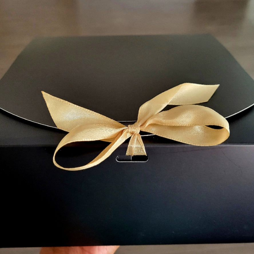 How would you like to create your own gift with our black candle box of scents and items for any occasion? It's a beautiful and classic black box with gold or silver ribbon and paper shred on the inside. Your recipient will feel so special and loved to open the box, smell the candles or wax melts, drink coffee pr tea from their scripture mug and smile.