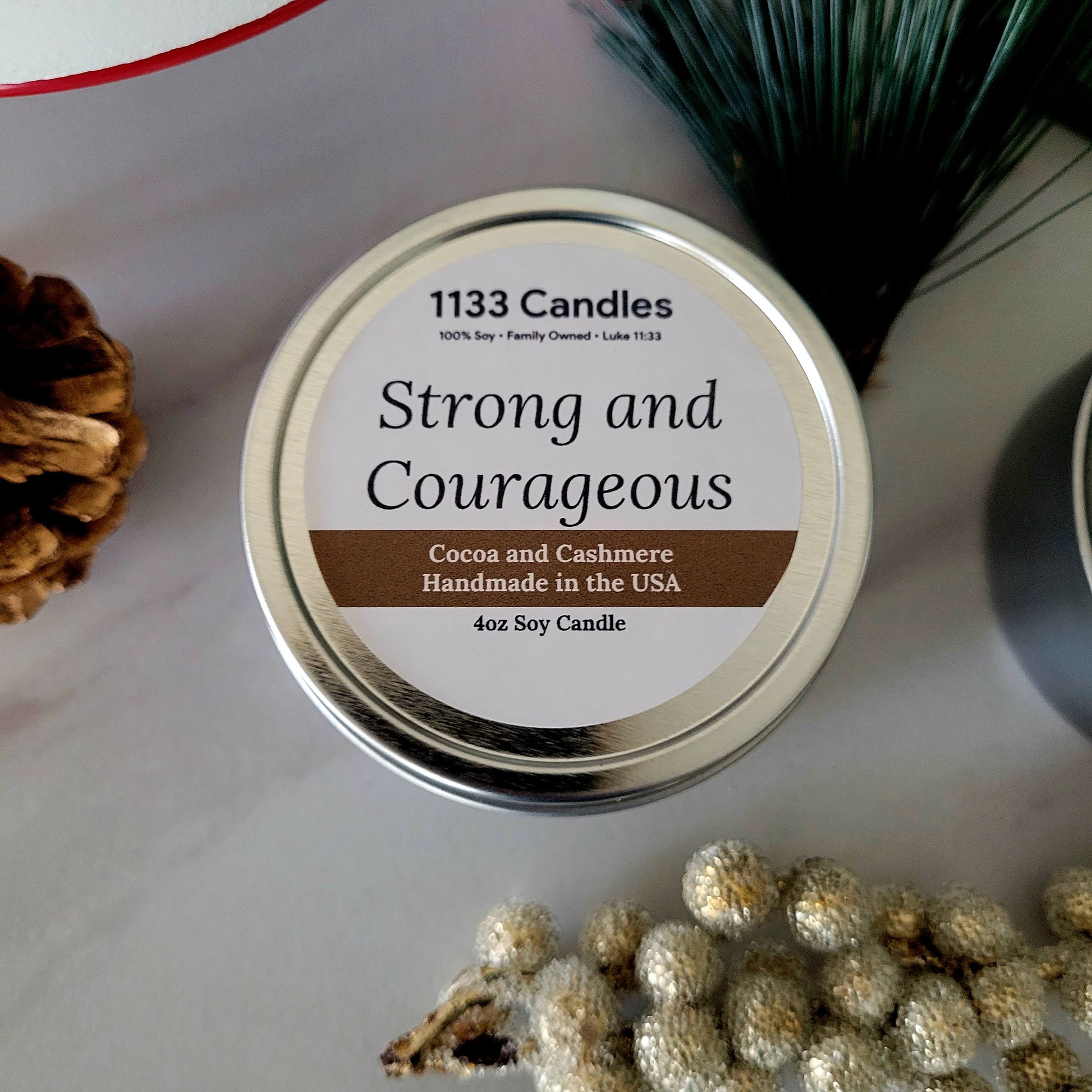Strong and Courageous 4oz Soy Candle Details: